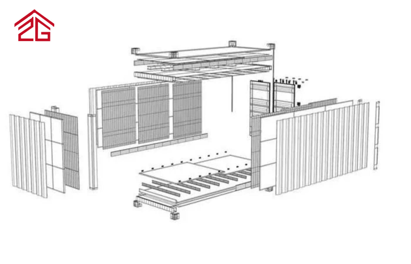 Tető és fal: 0,5 mm-es vaslemez 50mm EPS szigetelőréteg